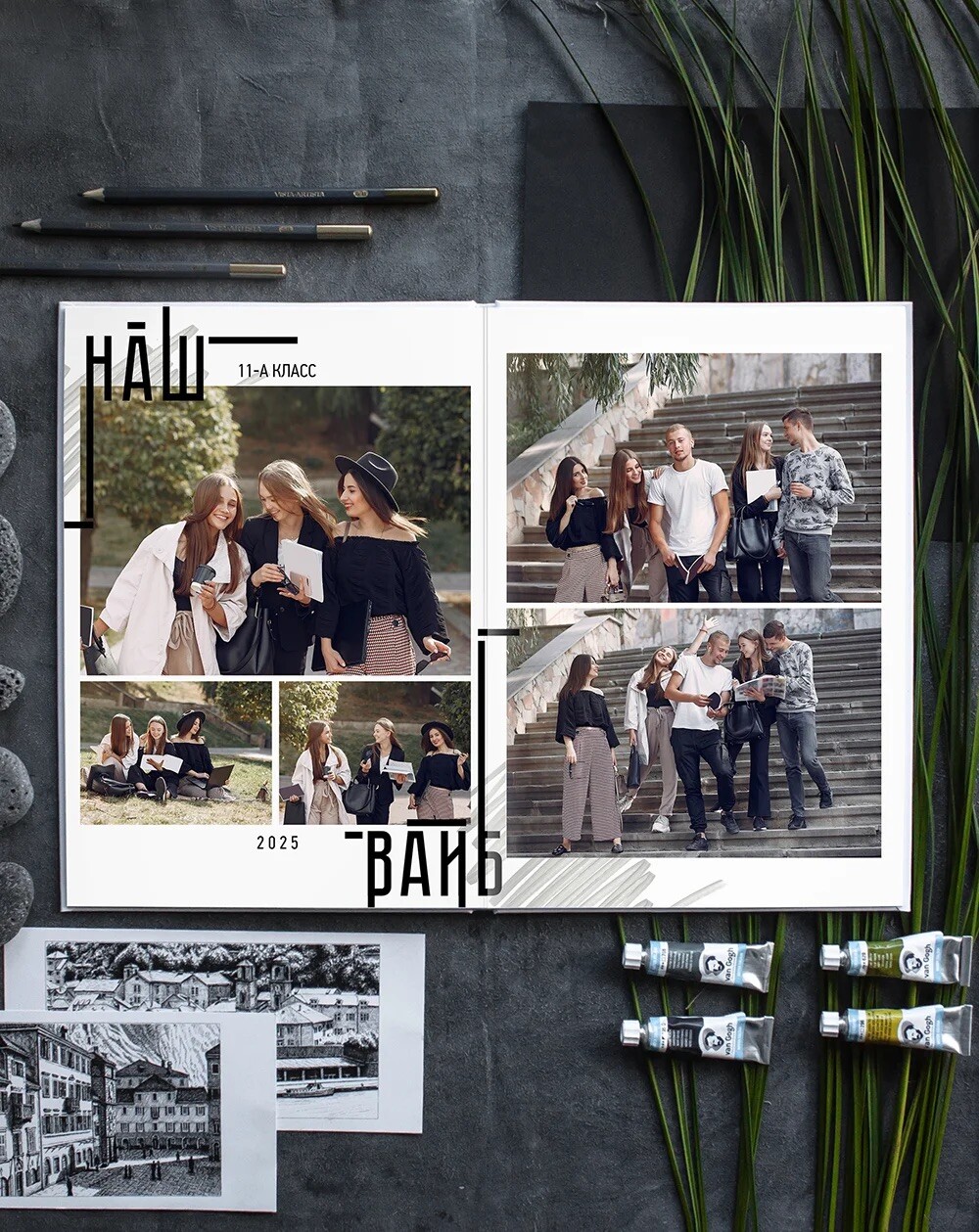 Фотокнига формата альбома А4, твердые страницы, 6 разворотов (12 страниц), раскрытие на 180 градусов