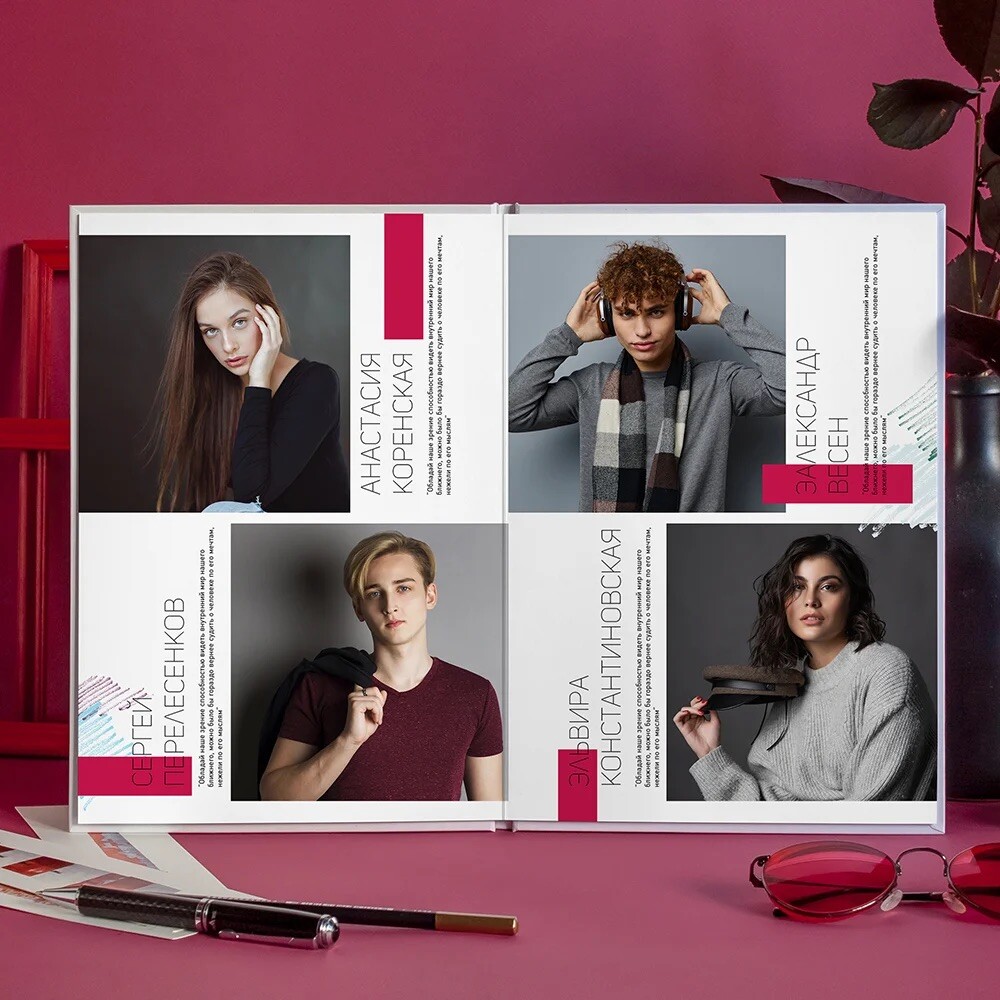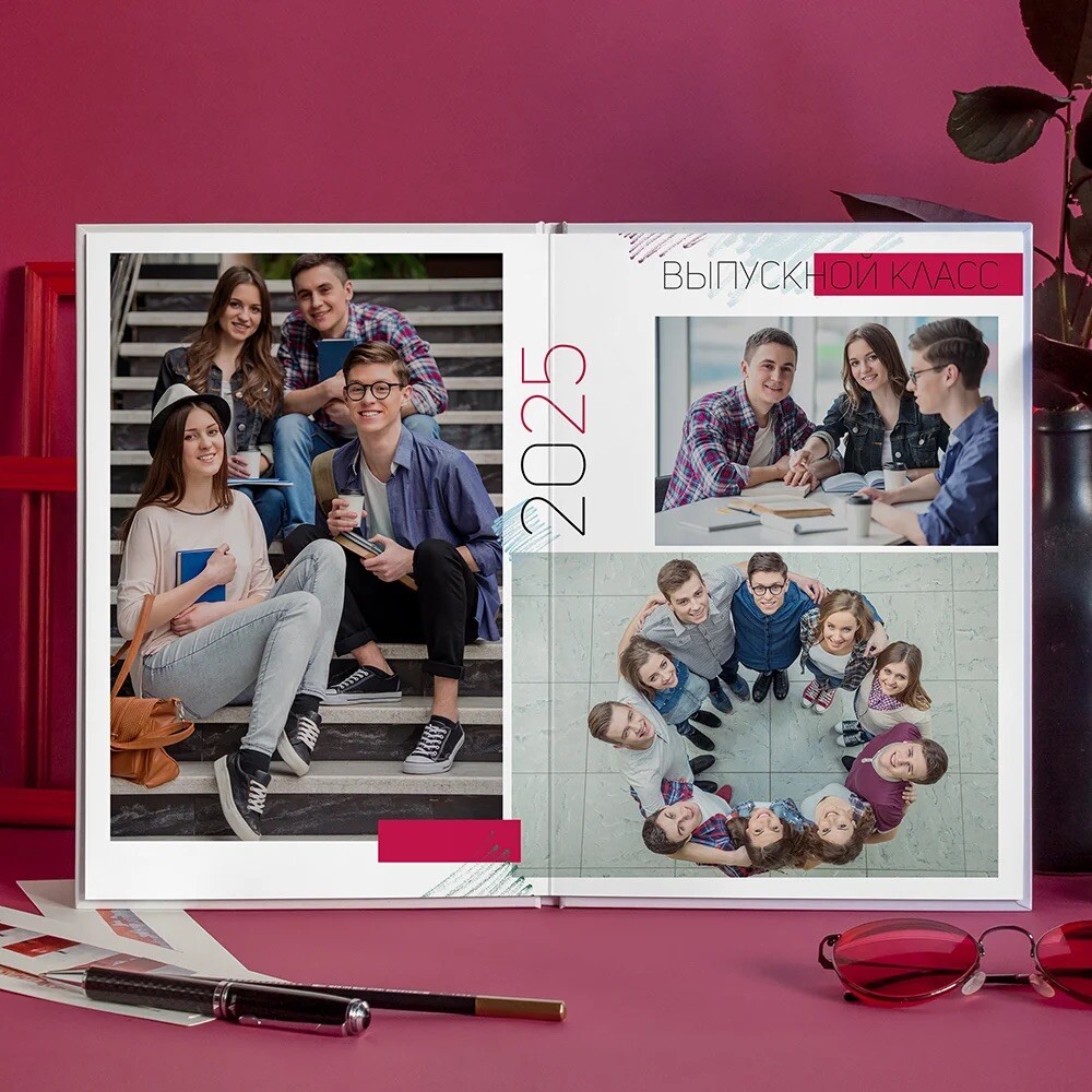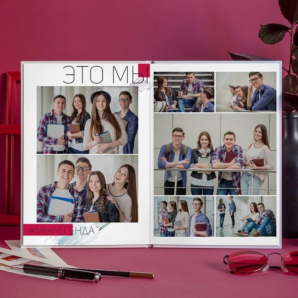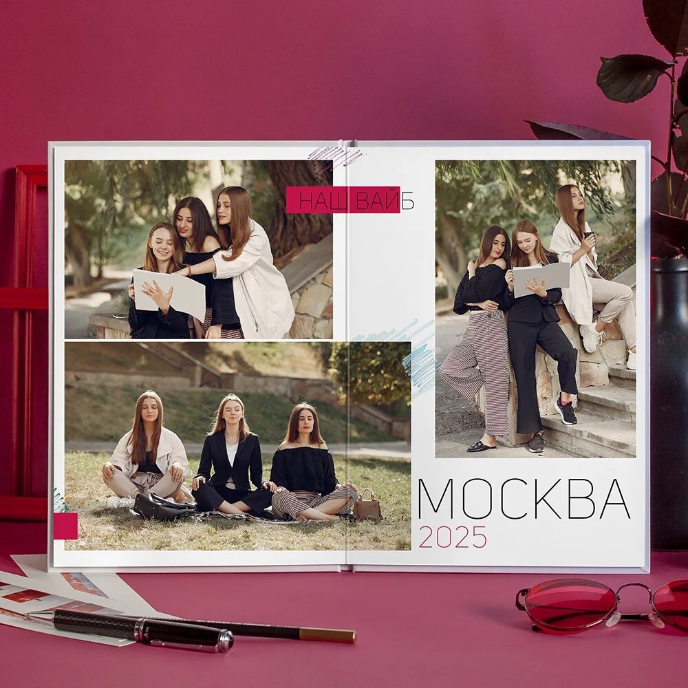 Фотокнига формата альбома А4, твердые страницы, 6 разворотов (12 страниц), раскрытие на 180 градусов