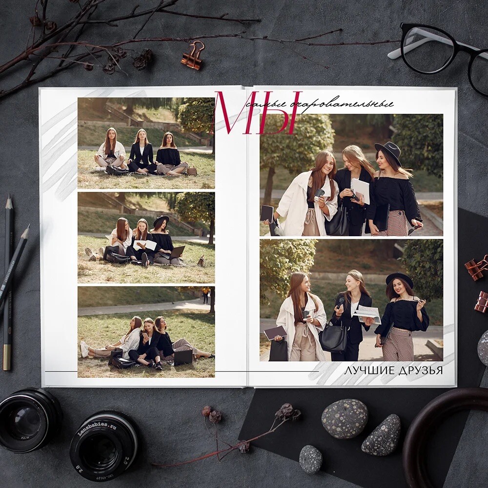 Фотокнига формата альбома А4, твердые страницы, 6 разворотов (12 страниц), раскрытие на 180 градусов